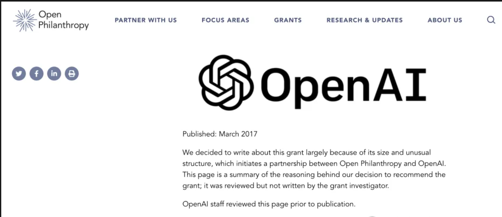 其中Open Philanthropy还是OpenAI的早期投资方。